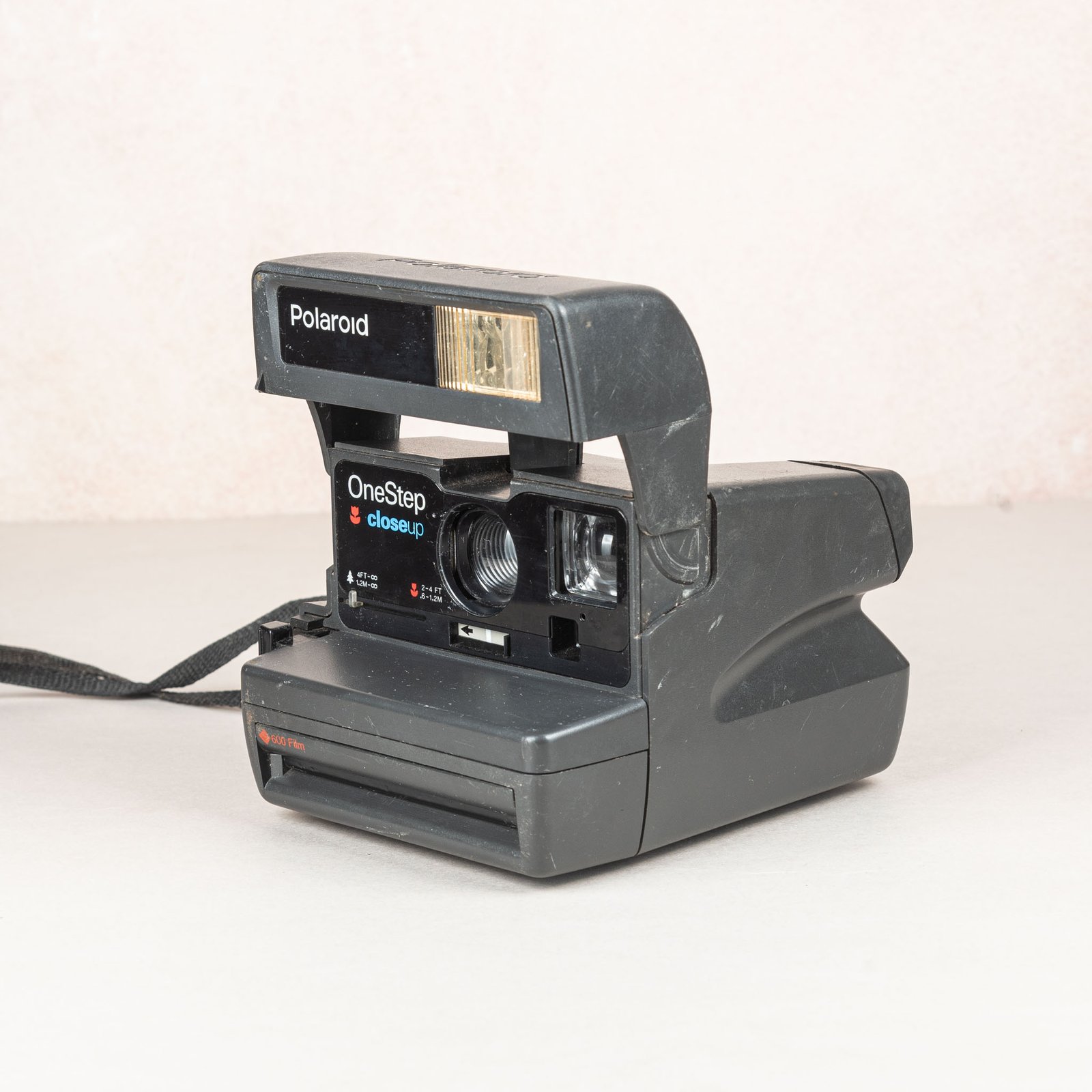 The Polaroid OneStep CloseUp is an instant film camera introduced in the 1990s as part of the popular OneStep series. It uses 600-type instant film and is known for its simple, point-and-shoot design with built-in flash, fixed-focus lens, and a close-up slider that lets users shoot subjects from as near as 2 feet away. Compact and easy to use, it became a favorite for casual photography and remains a nostalgic collectible for instant film lovers.